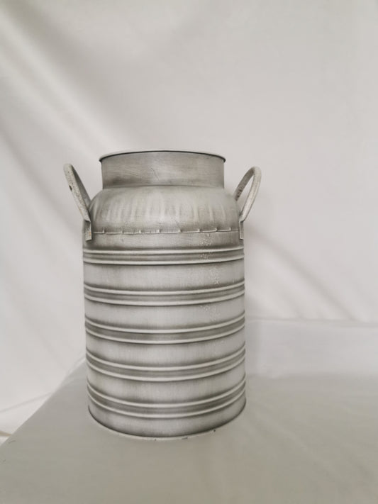 Milk Jug Look Tin Vase Ribbed Neck